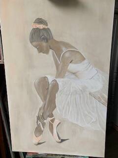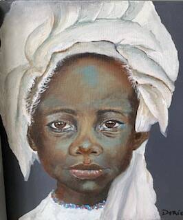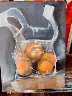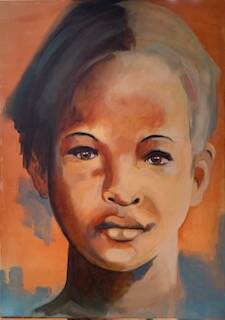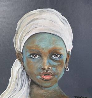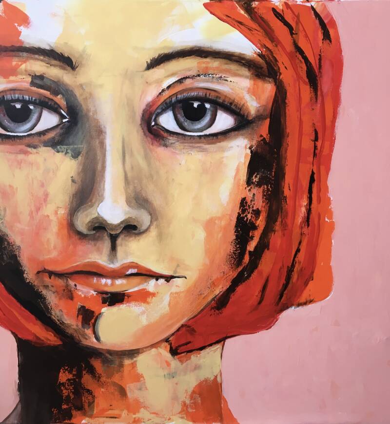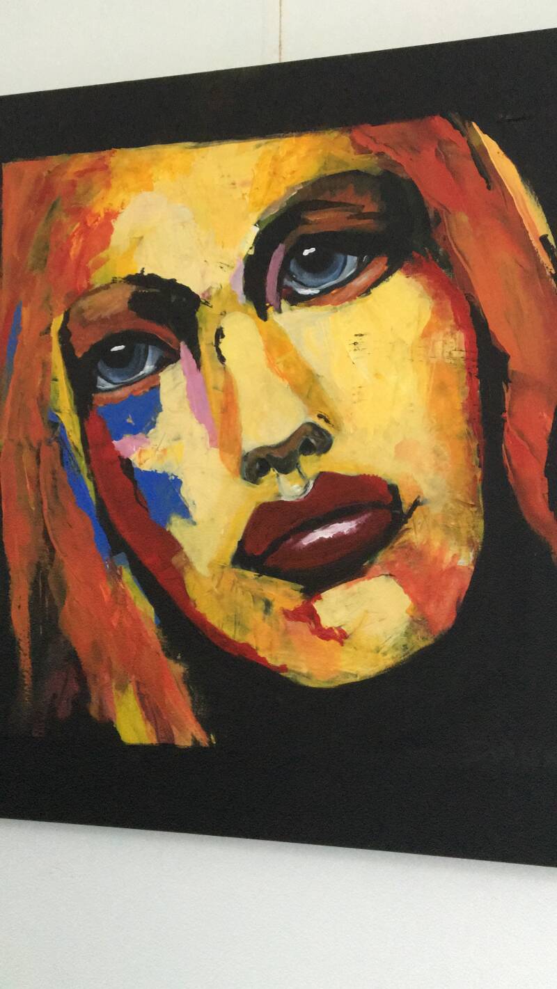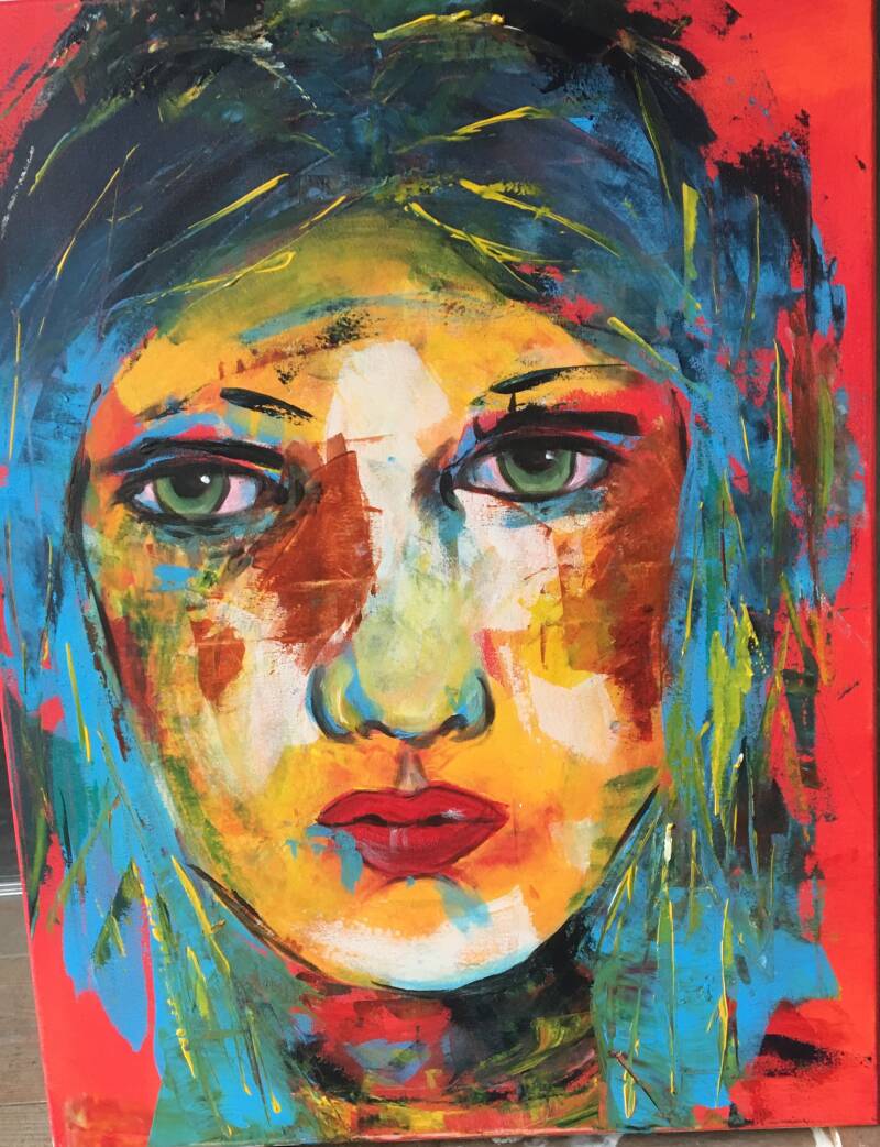Geschilderd uit de losse hand met acrylverf, paletmes en oude plastic kaartjes (bankpasjes).